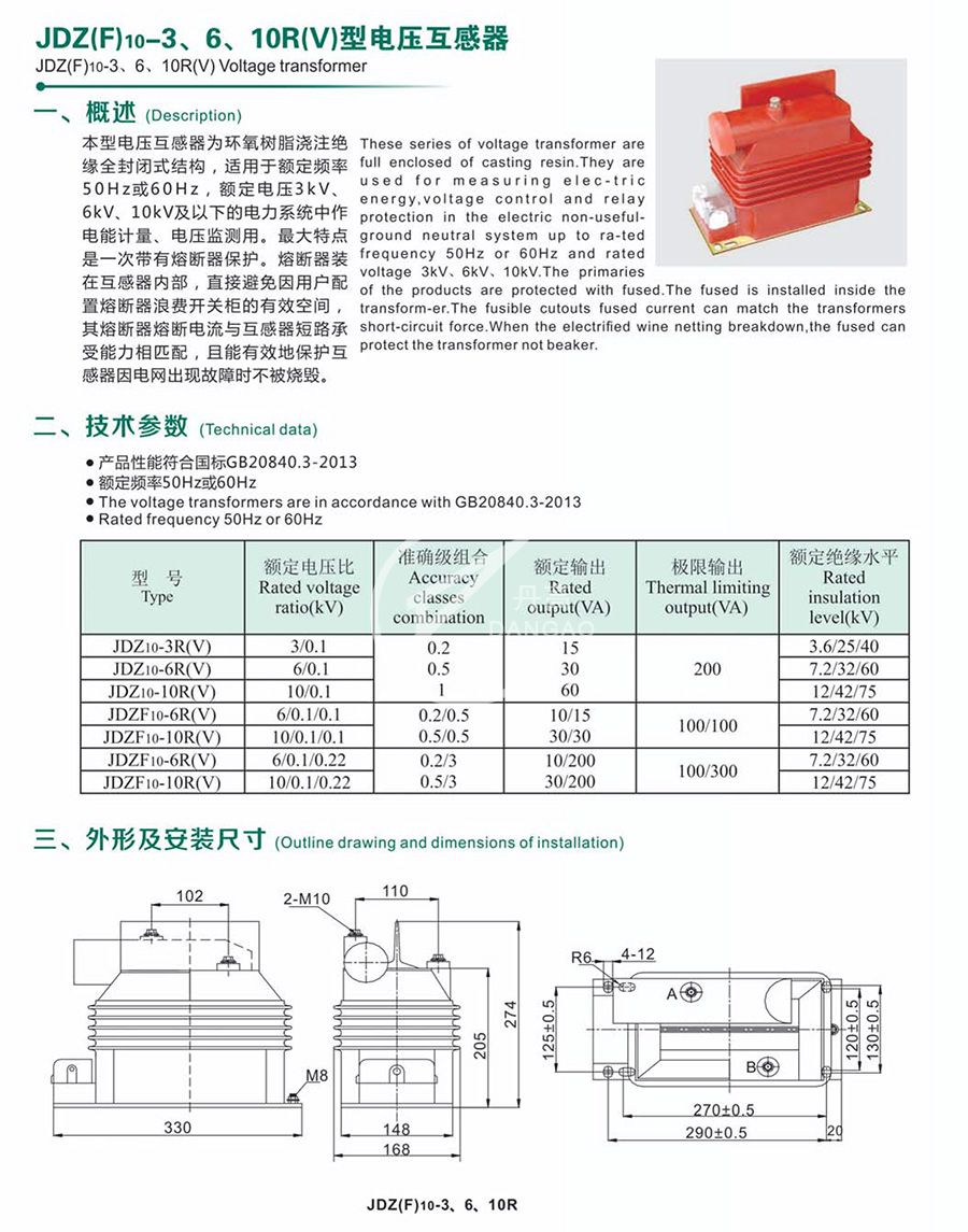 產(chǎn)品型號(hào):JDZ(F)10-3、6、10R(V)